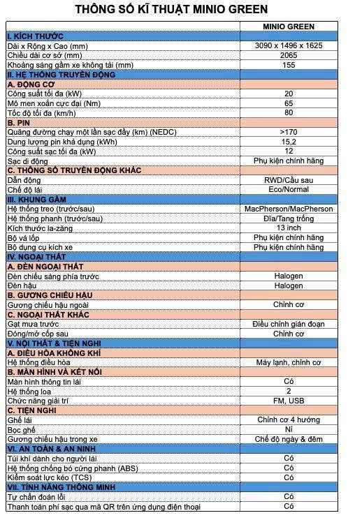 Thông số cơ bản Minio Green