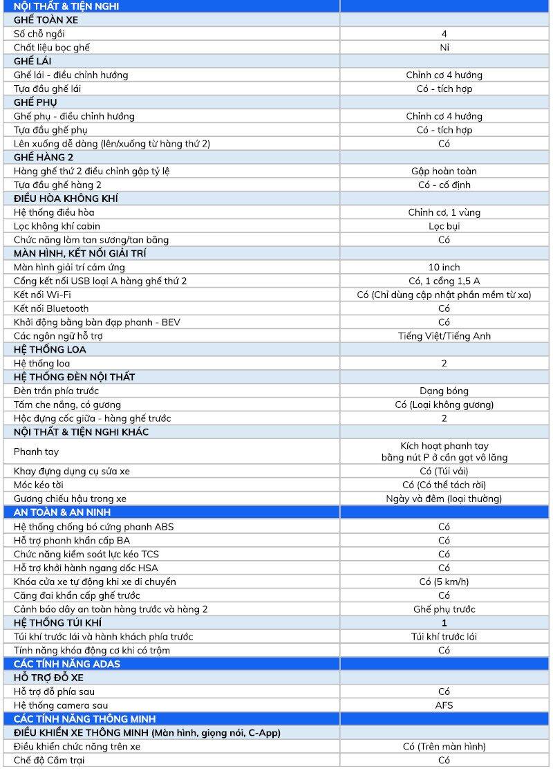 THÔNG SỐ KỸ THUẬT VINFAST VF3