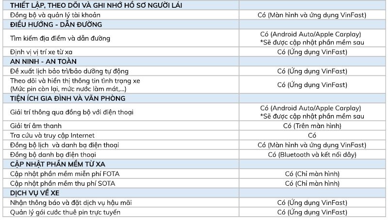 VinFast cung cấp 3 gói thuê pin cho khách hàng lựa chọn. Một là gói 900.000 đồng/tháng giới hạn di chuyển dưới 1.500km. Tiếp theo là 1,2 triệu đồng/tháng cho quãng đường di chuyển từ 1.500 – 2.500km. Cuối cùng là gói 2 triệu đồng/tháng cho mức di chuyển trên 2.500km.